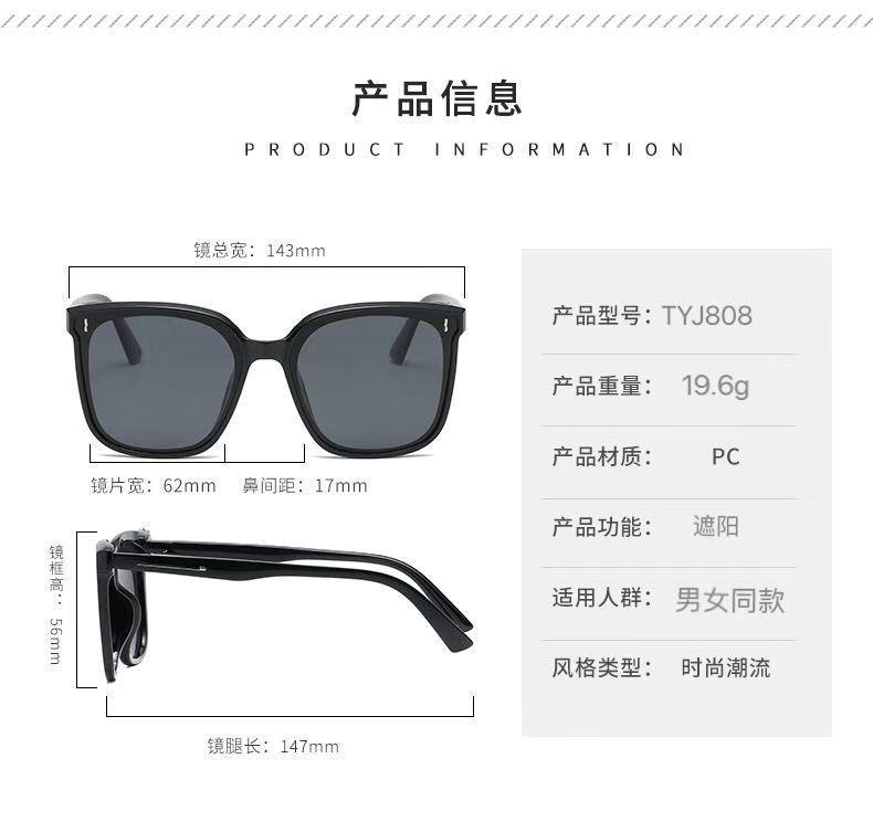 白框墨镜女开车防晒太阳镜防紫外线ins风大脸显瘦眼镜gm 一件代发